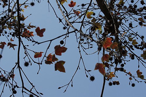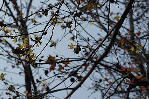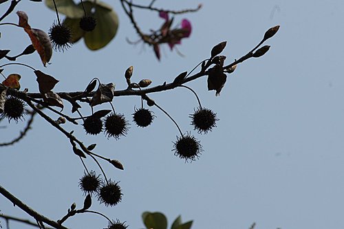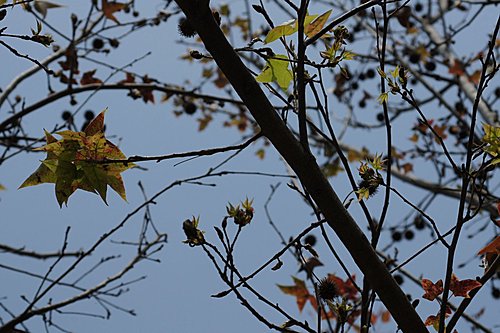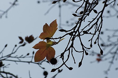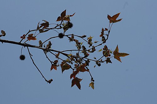 「楓香」(Liquidambar formosana---Liquidambar,liquid為液體,ambar為琥珀,意指它會流出芳香樹脂, formosana福爾摩莎指台灣,台灣早期被稱為美麗的小島, 俗稱: 香楓、楓樹、大葉楓、路路通、雞楓樹、雞爪楓、楓子樹、白膠香、靈楓、香菇木, 英文名稱:Sweet Gum)