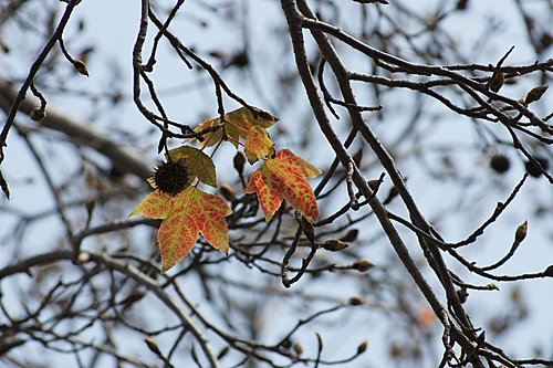 楓香紅葉的形成和許多落葉樹種一樣,由於溫度的改變,葉片內的花青素(紅色)、葉黃素(黃色)就會取代了葉綠素,溫度越低,時間越久,紅、黃葉的現象會越來越明顯而美麗,因此每年冬天東北季風將寒流吹過,就會讓植物園裡的楓香吹出楓紅。落葉後的楓香留下滿樹的帶刺蒴果另有一番風味。楓香變化繽紛的楓葉與優美樹型常被用來做為庭園盆景和行道樹。