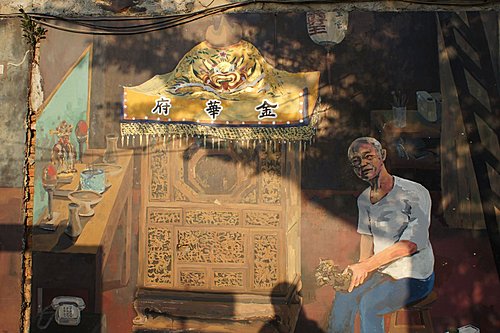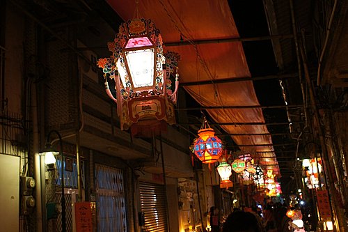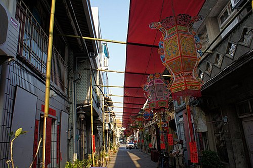 神農街的花燈今年很復古,是以泉州花燈為展出重點,傳統的泉州花燈上面雕有山水人物或花鳥魚蟲,當夜晚來臨時,張掛於棚架之下的一盞盞花燈點亮瞬間,宛如紅色燈河綿延神農街,花燈美景映入眼簾。紅色的燈河,搭配神農街復古的味道,遊客不僅可以抬頭欣賞花燈之美,也能來到神農街駐足觀賞許多傳統即將消失的行業,還有個人工作坊的手作物、陶皿等等傳統工藝美術品。