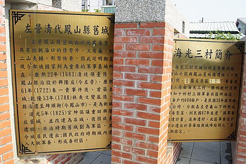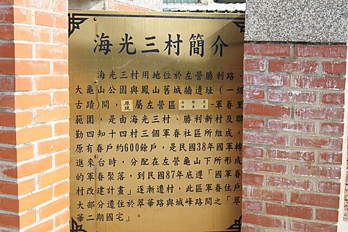 以左營眷村為例,左營眷村具有相當的在地性,依賴著工作地點 - 左海軍基地,左營23個眷村的眷民人口,在高雄市的人口總數中佔了相當大的比例。其中,左營除了擁有海軍各軍階的眷村外,相當完整的保留許多軍中文化,包含中正堂、中山堂、四海一家、豫劇隊、海軍運動場、海軍子弟小學(今海青工商)...等等,可以說左營是一個明鄭時期的先期移民與國民政府時期的新移民多元融合的地方,存在許多相當意義非凡的元素。
