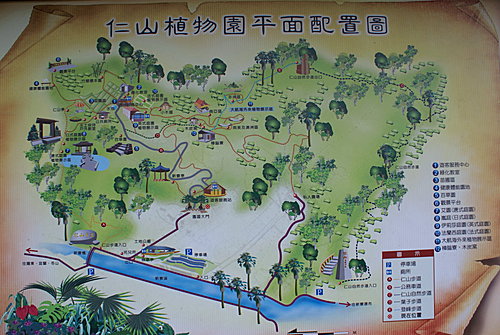 仁山植物園,舊名中山苗圃,許多路標仍用此名,又名十三分苗圃,此區從原本的苗圃到逐漸轉型為培育許多景觀應用苗木及花草植物,風景怡人、鳥語花香,本區更設置「仁山步道」,由於距市區不遠且交通方便,每逢假日總吸引外地遊客至此踏青,也讓自然步道人氣指數標高,成為登山及休憩的絕佳去處。,沿途有整片的茶園,一簇簇低矮的茶樹、高大的油桐、泡桐、樟樹..等,植物相豐富,全程約三公里,終點是一個視野寬闊的觀景平台,從觀景平台瞰看丸山、冬山河、蘭陽溪口、整個蘭陽平原盡收眼底。在晨昏時也是為最佳賞鳥時間,此地區春夏兩季筒鳥十分普遍。