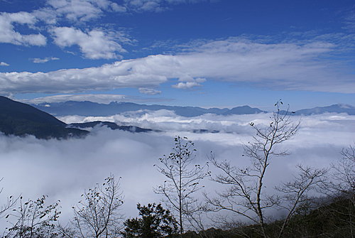 2009-1-1 大平山眺望白了頭的 大霸尖山 雪山 及 南湖大山