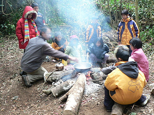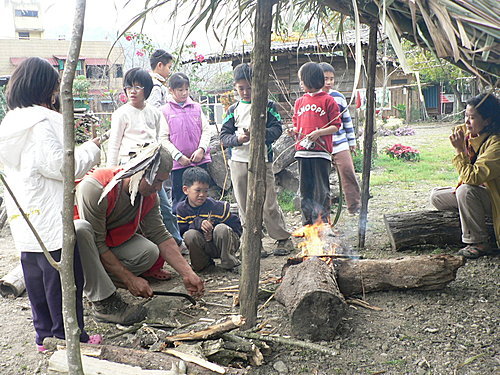 mo'o叔叔觀看大家生火![]()