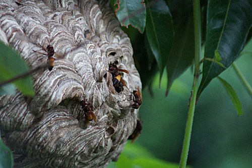 2.中華大虎頭蜂 (俗稱;大土蜂、土蜂、台灣大虎頭蜂、中國大虎頭蜂、大虎頭蜂) ,此種蜂,蜂窩主要建築於土穴(地面)因而又名土蜂,其岩石洞穴跟空樹洞以及樹根都是牠們築巢的地點。